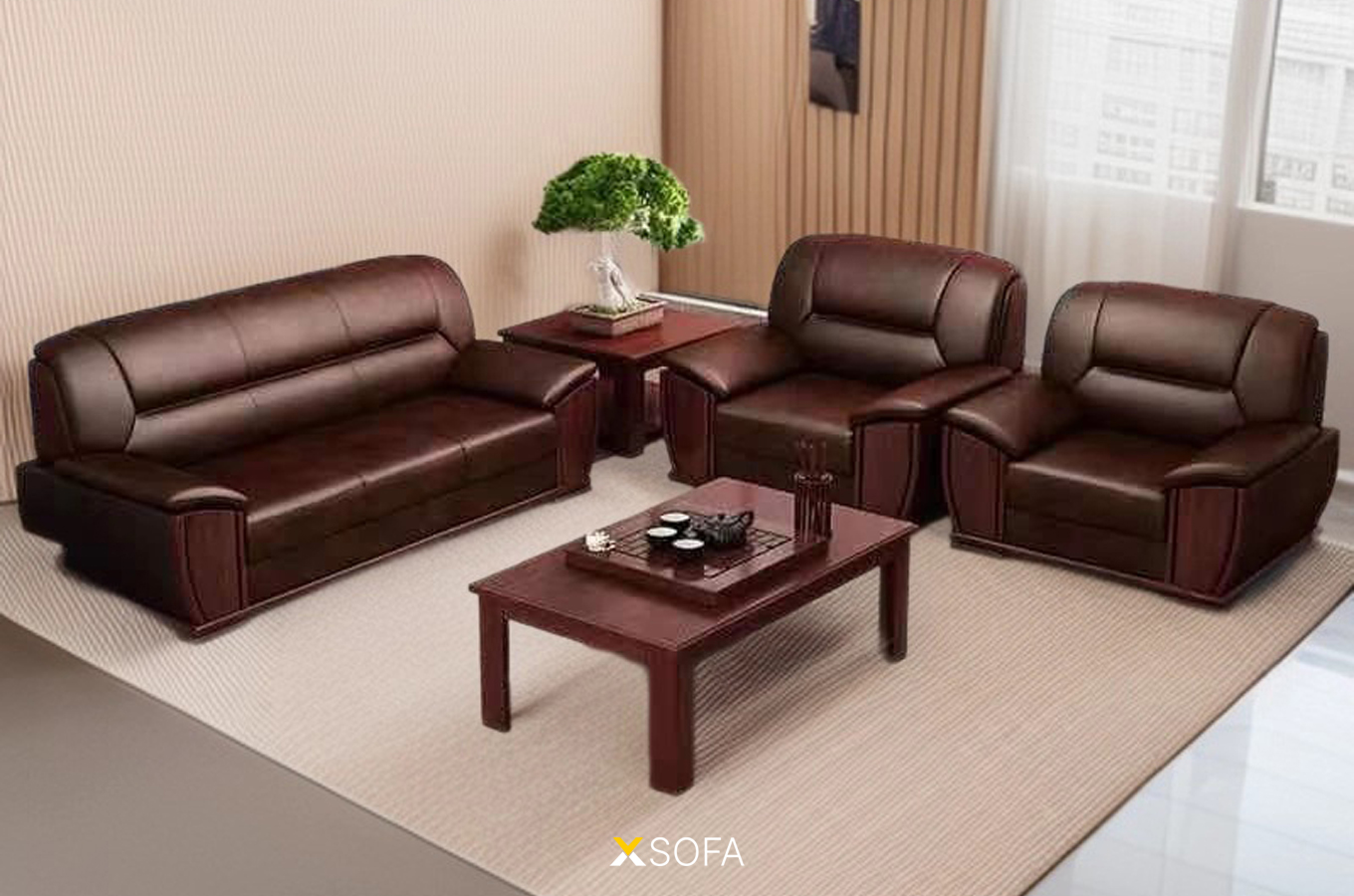 Giá bán áp dụng cho 1 bộ gồm 1 ghế văng dài 2,05m x 0,85m và 2 ghế đơn 1,15 x 0,85m, bọc da công nghiệp pu.