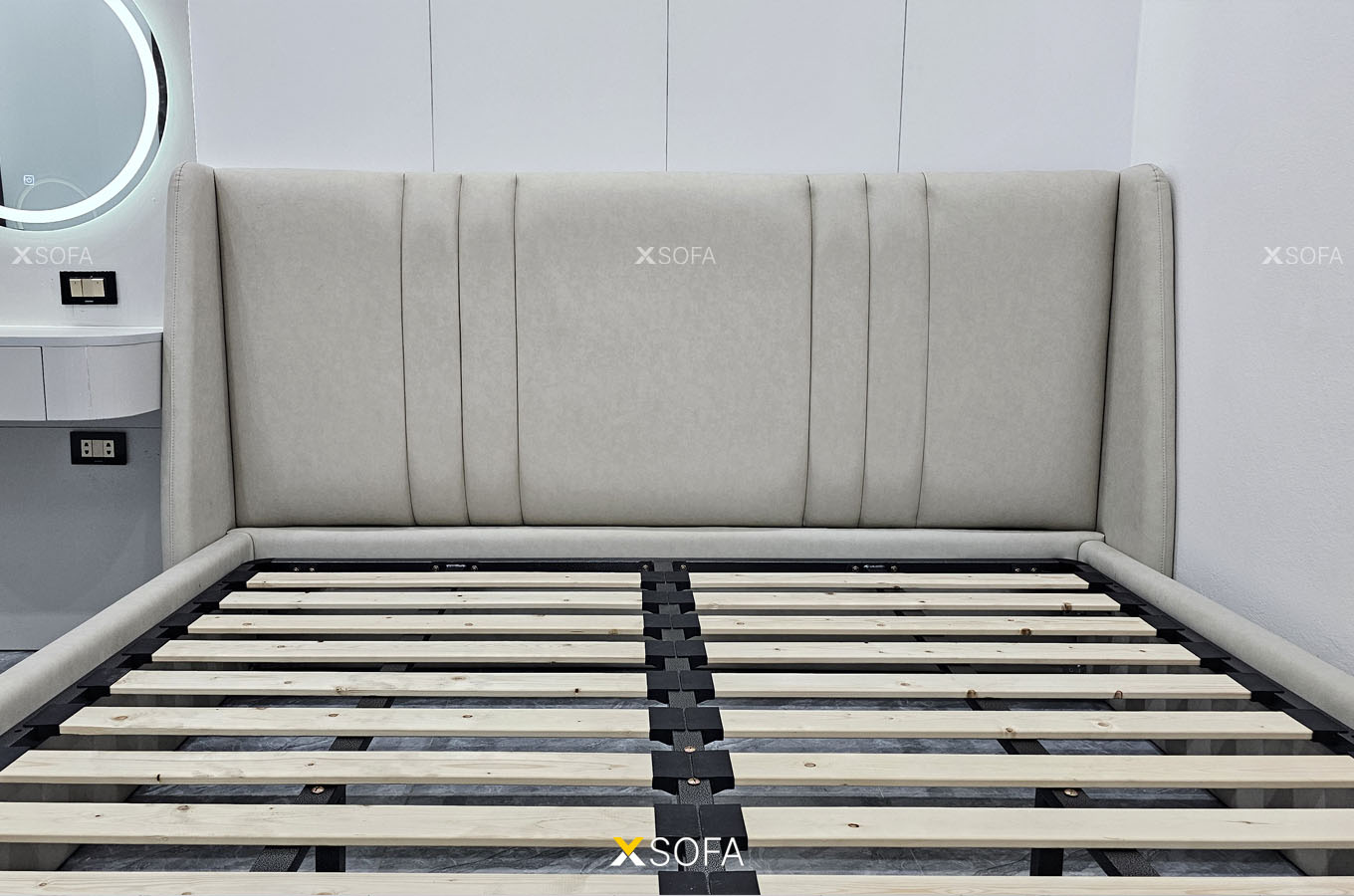 Giường sử dụng hệ khung gỗ tự nhiên bền đẹp chắc chắn, kết hợp hệ nan cong đàn hồi cao cấp giúp nâng đỡ tốt trọng lượng cơ thể, bảo vệ nệm và cột sống. Đây là dòng kết cấu đang được đánh giá cao về độ bền và khả năng hỗ trợ giấc ngủ sâu, thư giãn.