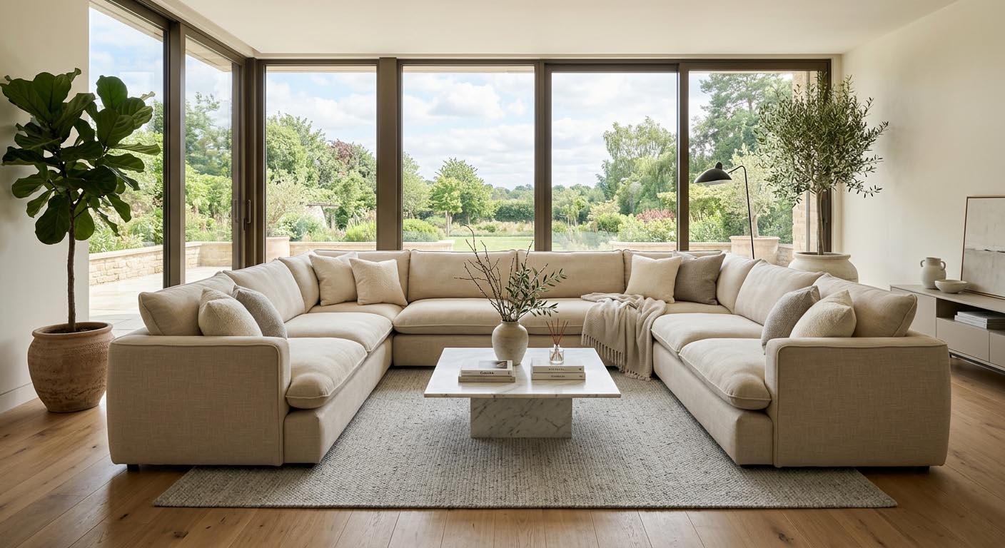 Sofa chữ U có kích thước lớn, thiết kế bao quanh tạo thành hình chữ U