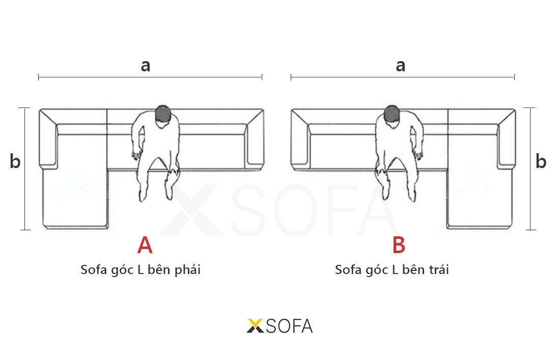 Khi bạn chọn ghế sofa góc, bạn phải lưu ý đến chiều cạnh góc. Và kích thước kiểu ghế góc sẽ có 2 cạnh là a và cạnh góc b. Đây cũng là lưu ý để bạn chọn kích thước phù hợp cho phòng khách của riêng bạn.